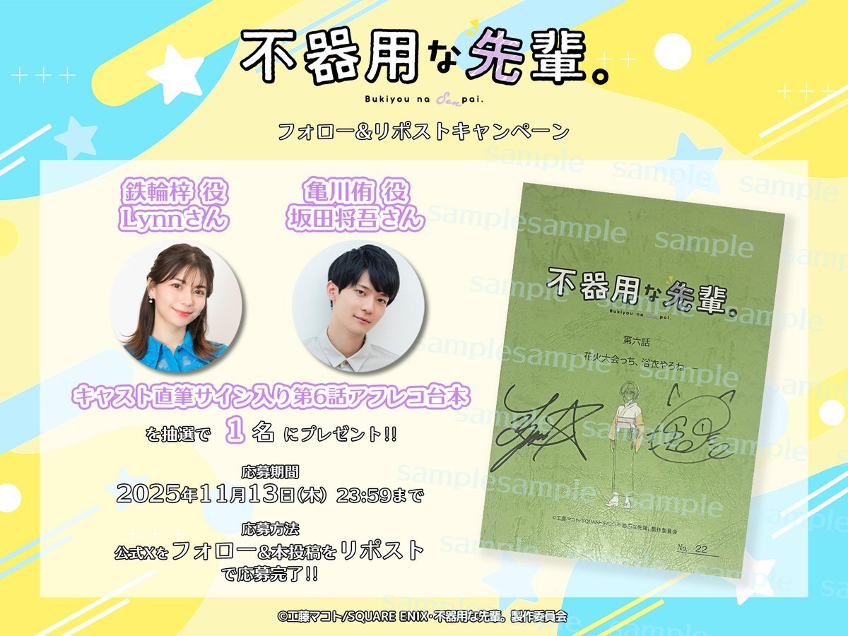 後輩たちの楽しみをとってはいけないと傷つきながら後輩たちを守った先輩が格好良かったです✨浴衣の着付けに苦戦してアドバイスを求めたものの、やはり動画で見るしかなくて行き詰まって悩んだりしていて可愛かったです✨お母さんが写真で送ってくれた浴衣のデザインが面白かった✨ #不器用な先輩 x.com/bukiyou_anime/…
